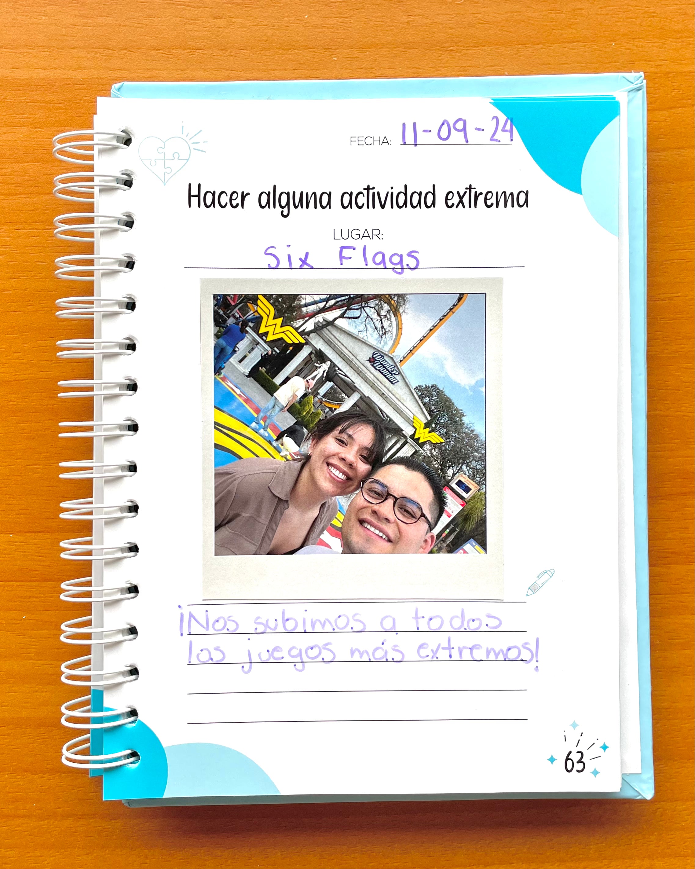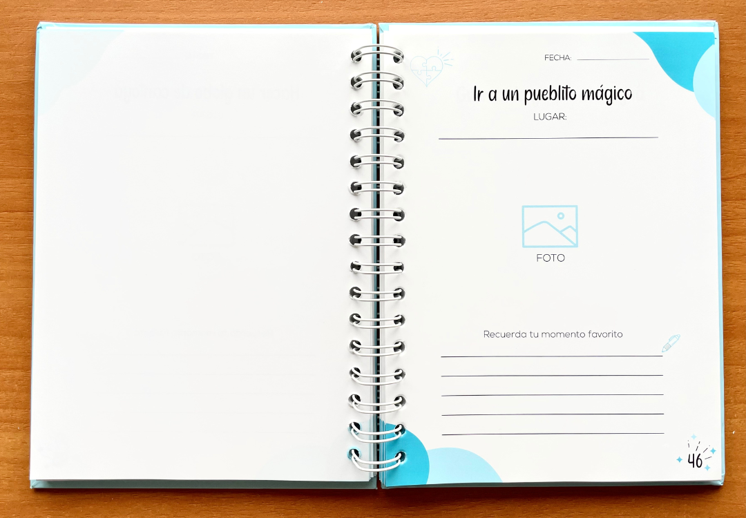 Cada página incluye una actividad, espacio para una foto especial, y un lugar para escribir sobre lo que vivieron juntos. ¡Este álbum es más que un simple libro, es un mapa hacia los mejores recuerdos que crearán como pareja! 💖
